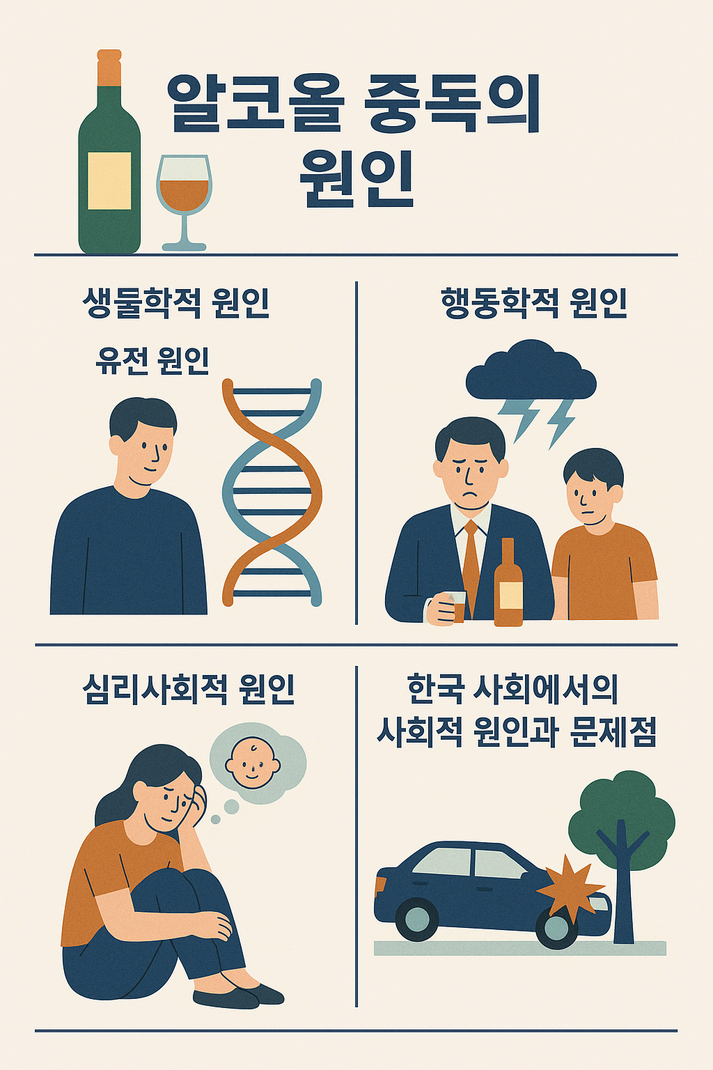 결론적으로 알코올 문제는 개인적인 의지만으로 극복하기 어려운 질병이며 생물학적·심리사회적 요인을 포괄적으로 고려한 전문적인 치료 접근과 지속적인 관리가 필요하다.